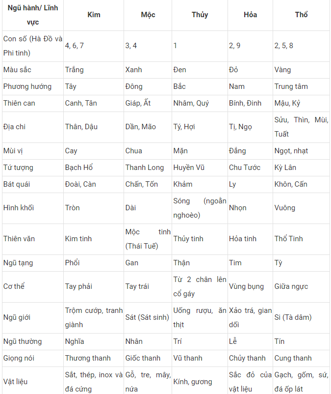 Ngũ hành bao gồm 5 yếu tố: Kim – Mộc – Thủy – Hỏa – Thổ, đại diện cho các quy luật vận hành của tự nhiên và con người. Mỗi người sinh ra đều mang một bản mệnh tương ứng với ngũ hành, và mỗi bản mệnh sẽ hợp hoặc khắc với một số màu sắc nhất định.